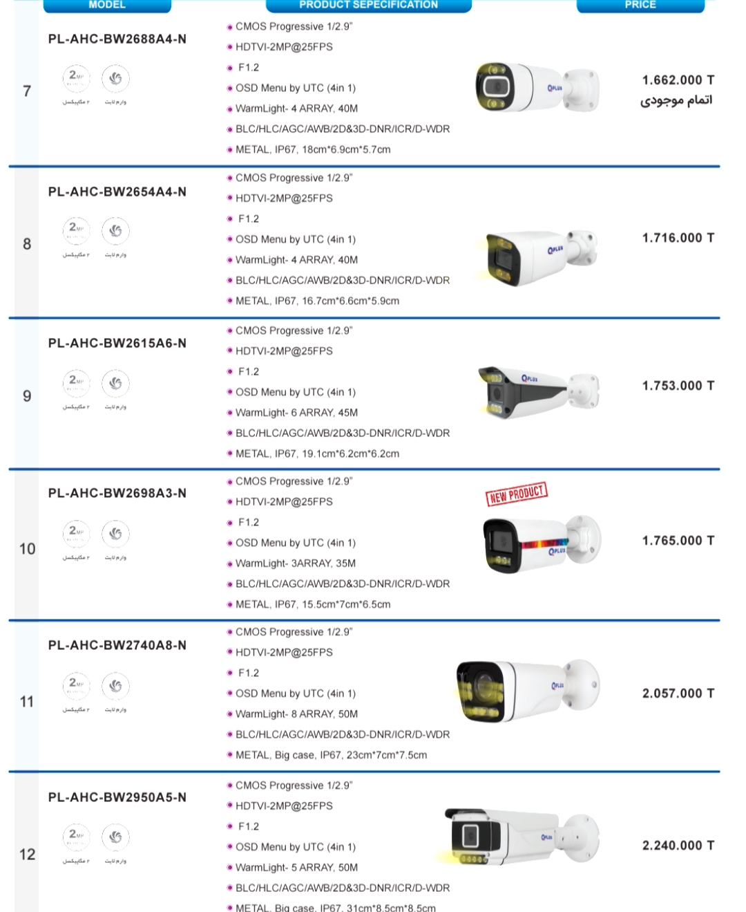 انواع دوربین های ۲مگ تا ۸مگ با کیفیت اصلی
