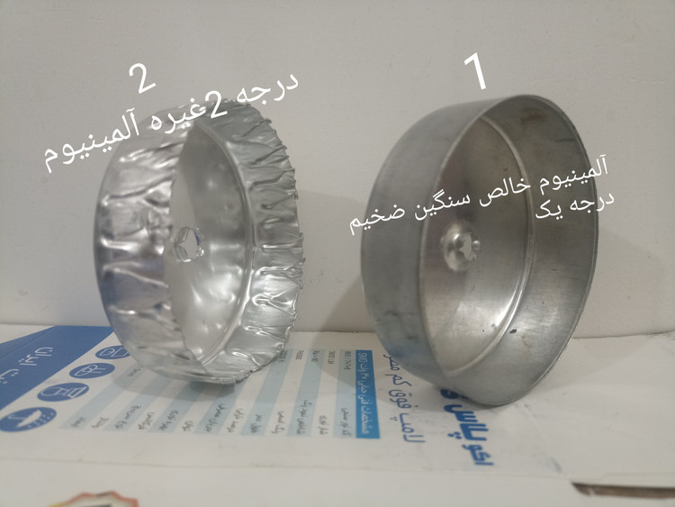 در تصاویر فرق بین جنس درجه یک و درجه ۲/عکس شماره ۱هیتسینگ آلمینیوم خالص سنگین میباشد و عکس شماره ۲غیره آلمینیوم میباشد.